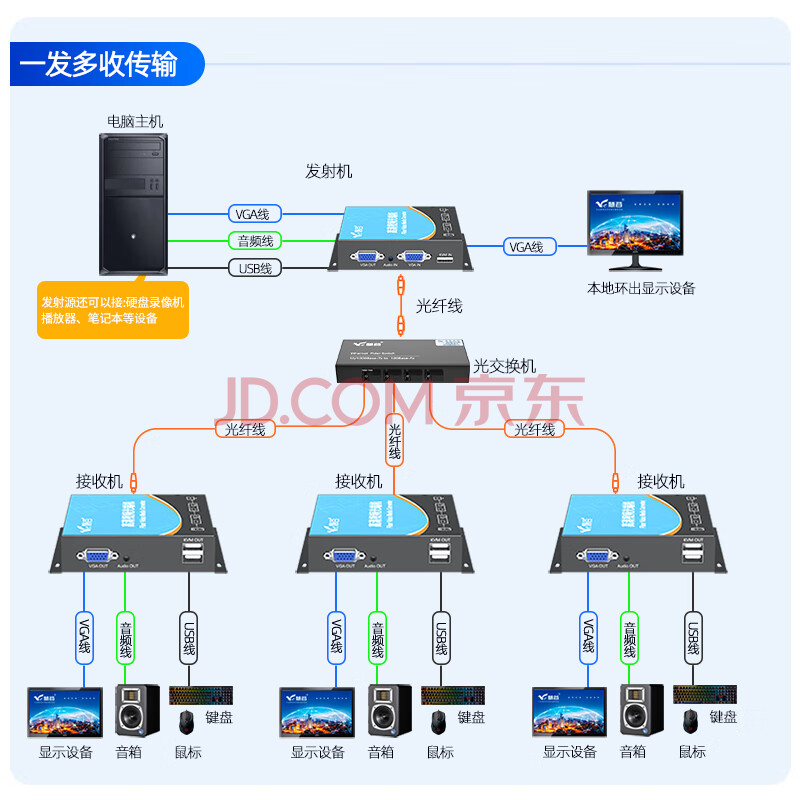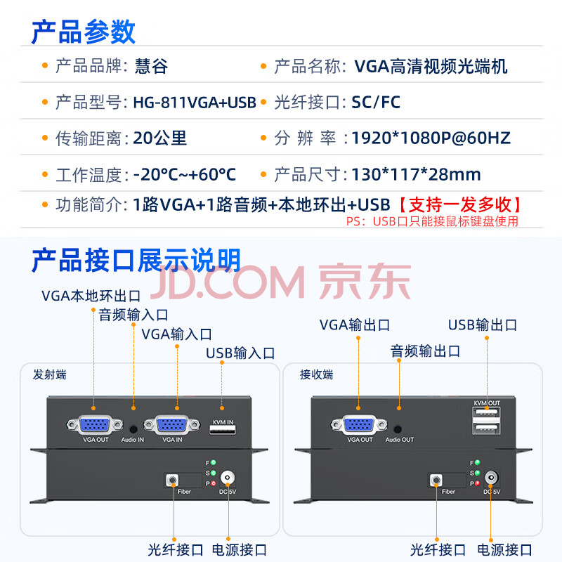 商品相册:慧谷 VGA光端机 高清视频VGA光纤延长器 1路VGA+1路音频+本地环出+USB FC接口 1对价 HG-811VGA+USB第