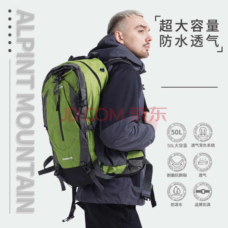 商品相册:ALPINT MOUNTAIN埃尔蒙特50L登山包徒步旅行背包男士大容量双肩包户外轻便旅行包第