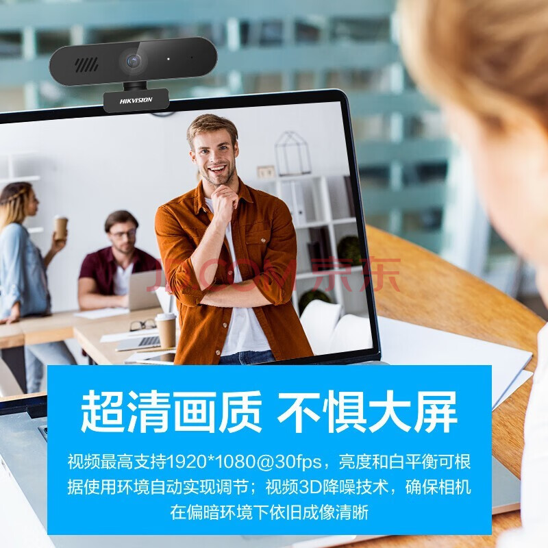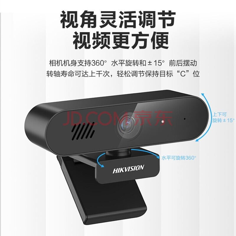 商品相册:海康威视HIKVISION 高清电脑摄像头 USB200万直播摄像头 内置麦克风考研上网课视频会议带扬声器家用办公E12s第