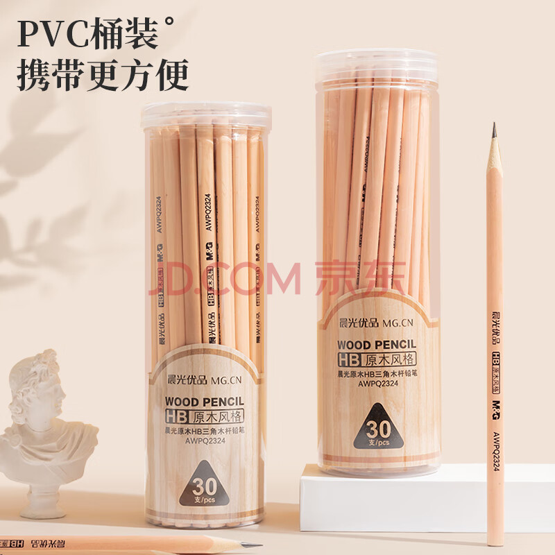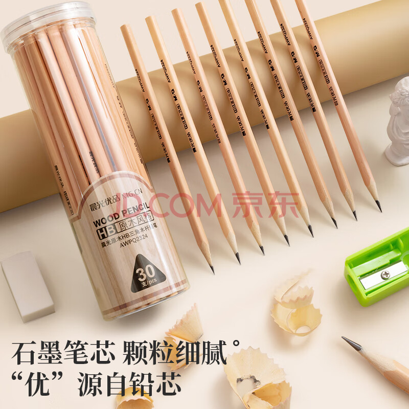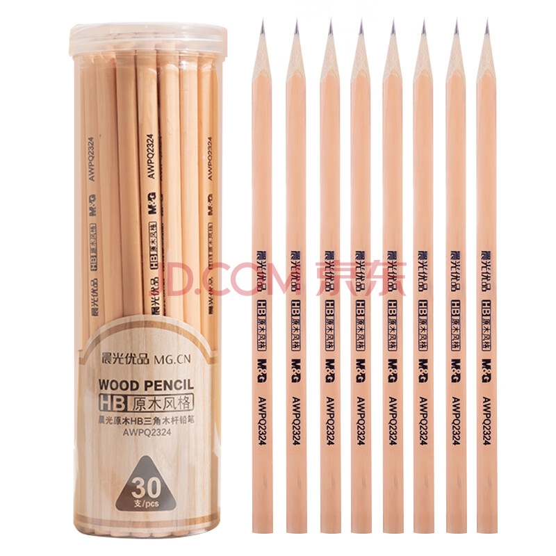 商品相册:晨光(M&G)文具HB铅笔30支 原木三角木杆铅笔 学生开学书写美术素描绘图木质铅笔AWPQ2324第