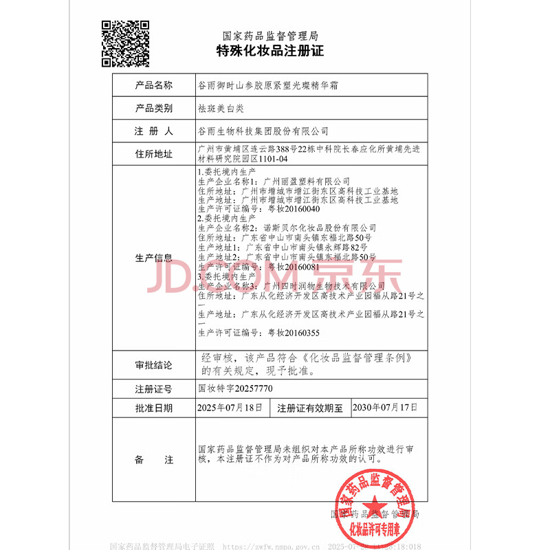 商品相册:谷雨山参胶原面霜30g保湿补水抗皱紧致美白淡纹护肤品生日礼物第