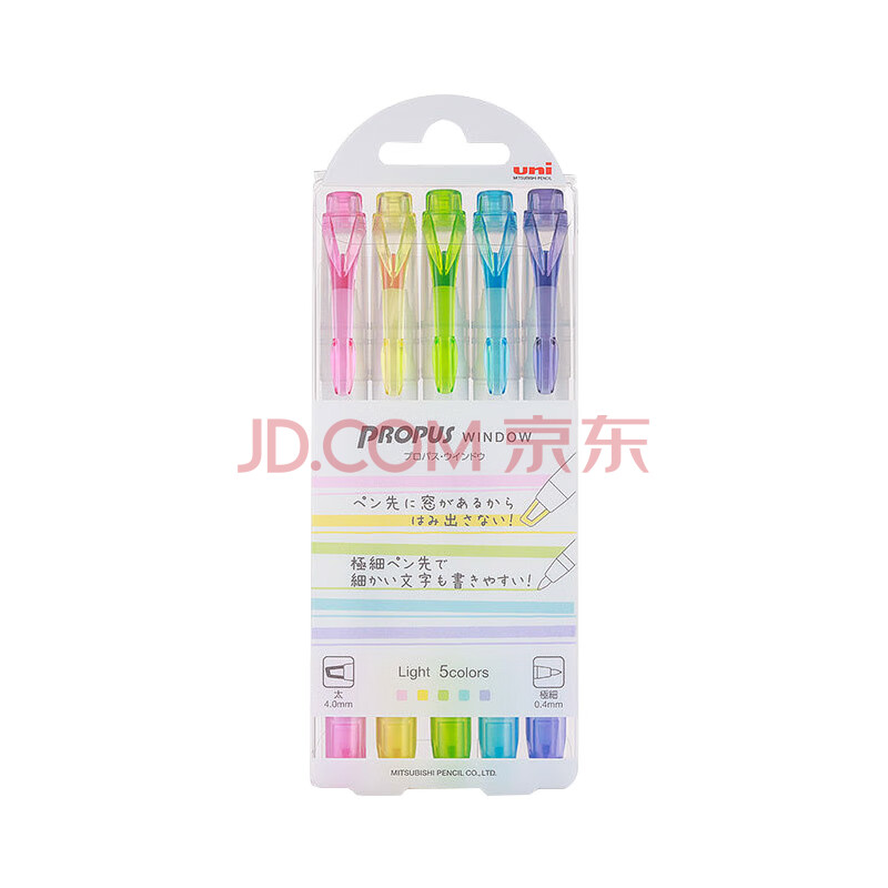 商品相册:uni三菱 双头荧光记号笔 学生作业手账绘画标记笔彩色笔 PUS-103T 5色淡色系套装第