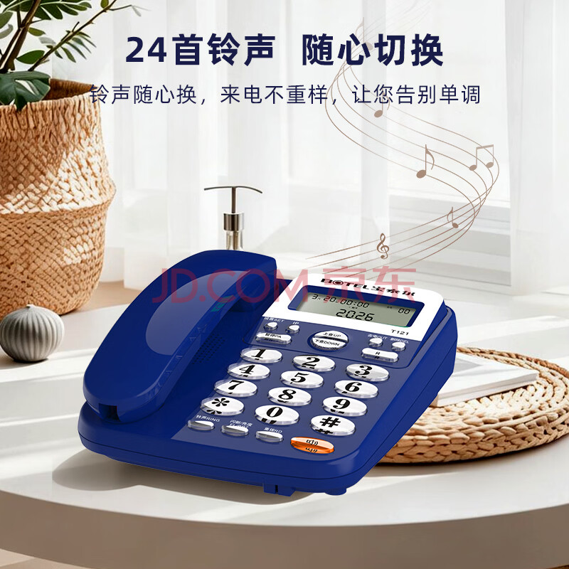 商品相册:宝泰尔电话机座机 固定电话 办公家用 免提通话/双接口 商务酒店固话机坐机 T121 免提版蓝色第