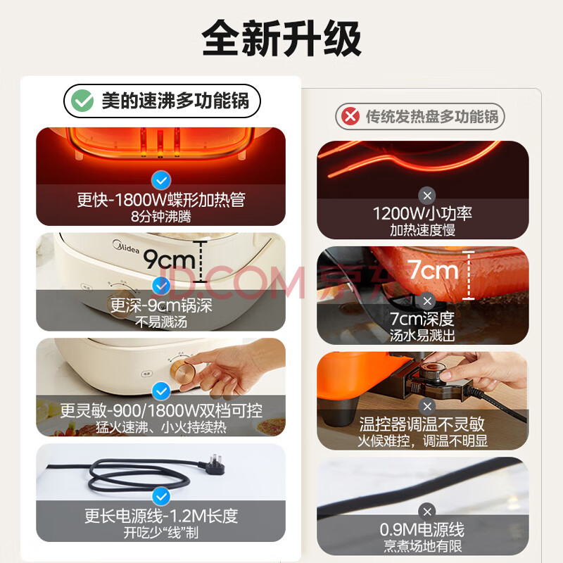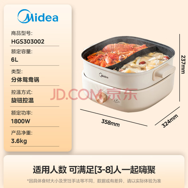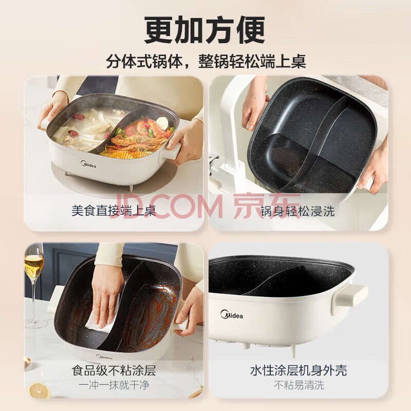 商品相册:美的(Midea)火锅专用锅 电火锅 鸳鸯锅 电煮锅多功能锅分体式家用电热锅涮肉锅多用途锅MC-HGS303002第