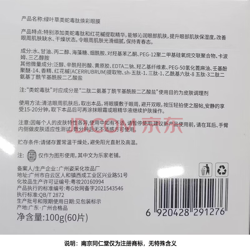 商品相册:同仁堂眼膜贴眼袋提拉紧致淡化细纹抗皱泪沟黑眼圈男女士熬夜细纹贴60片第