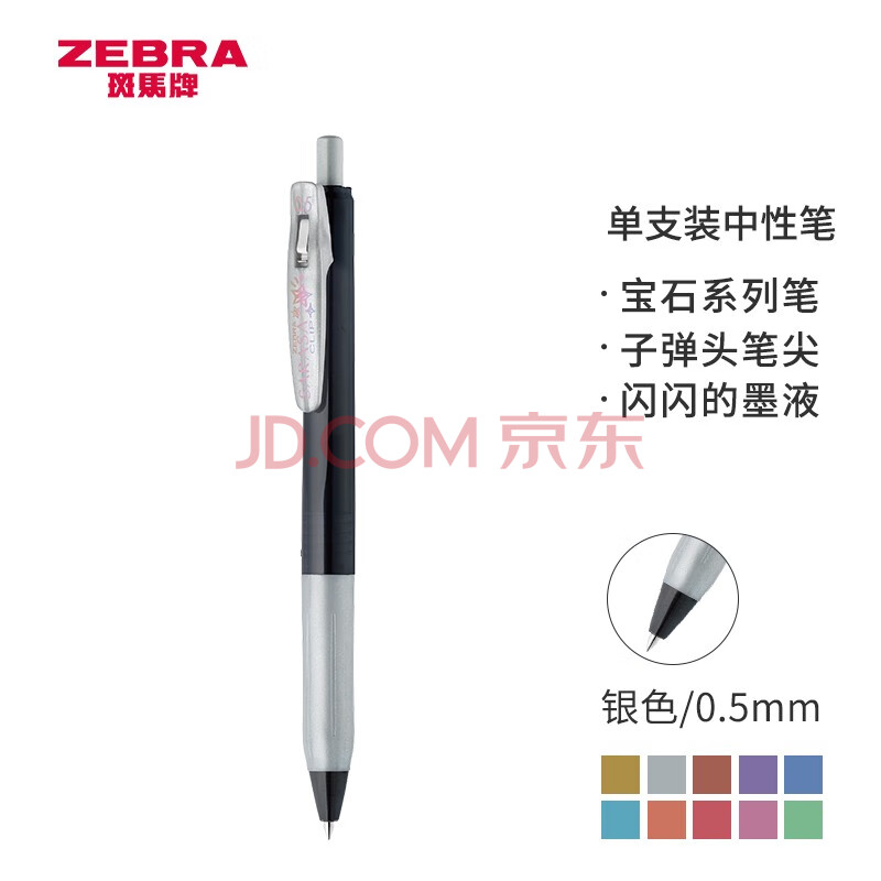 商品相册:斑马牌(ZEBRA)JJ15宝石系列中性笔 0.5mm按动中性笔子弹头签字笔 学生手账笔标记笔 JJ15-S 银色第