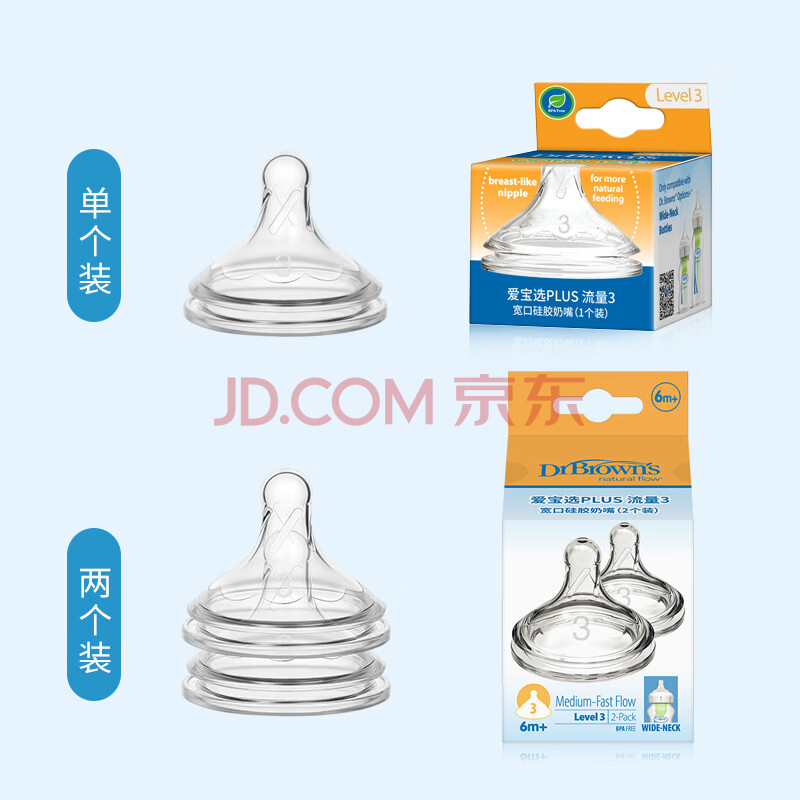 商品相册:布朗博士婴儿奶嘴 宽口径硅胶圆孔中流速 6-9月 (1个装) 爱宝选PLUS第