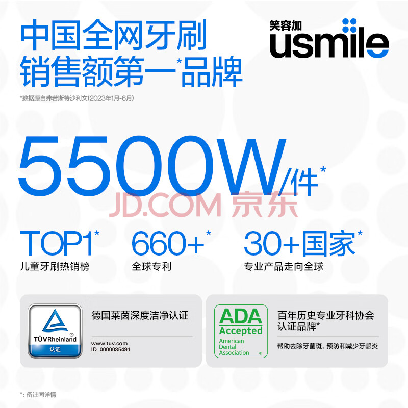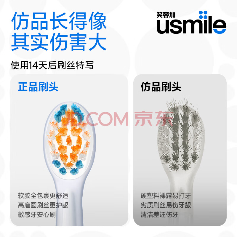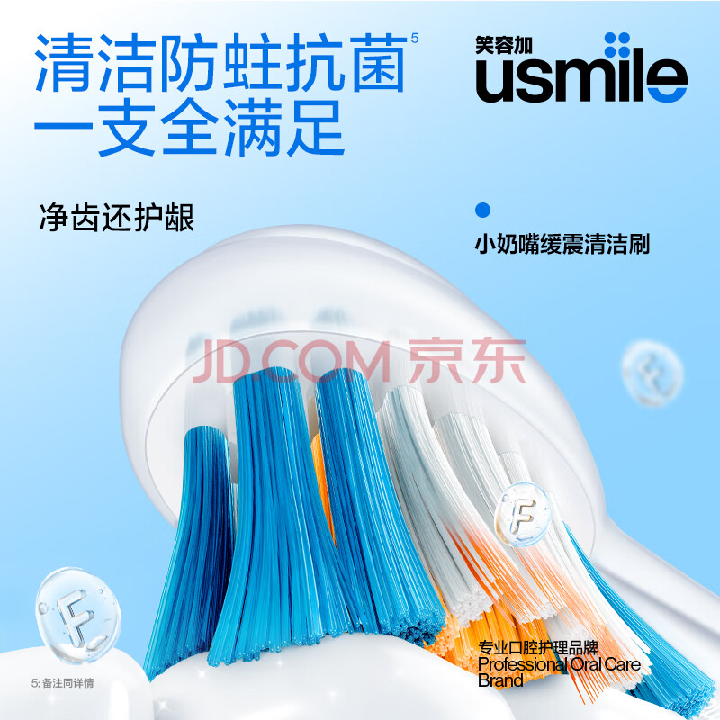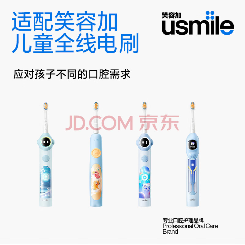 商品相册:usmile笑容加儿童电动牙刷头 mini缓震清洁牙刷头2支装 呵护清洁防蛀抗菌 适配Q20Q30等全系列儿童电刷第