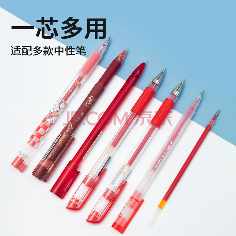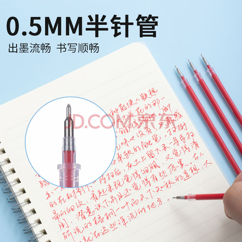 商品相册:晨光(M&G)文具红色0.5mm半针管中性笔芯 拔盖签字笔替芯 经济型水笔芯 12支装MG6159第