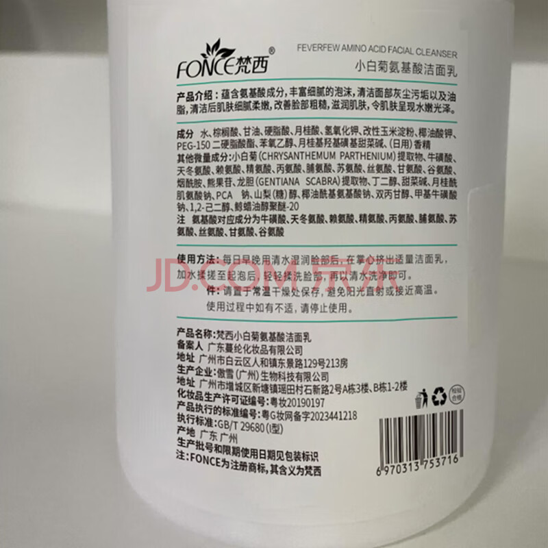 商品相册:梵西小白菊氨基酸洁面乳补水保湿控油洗面奶第
