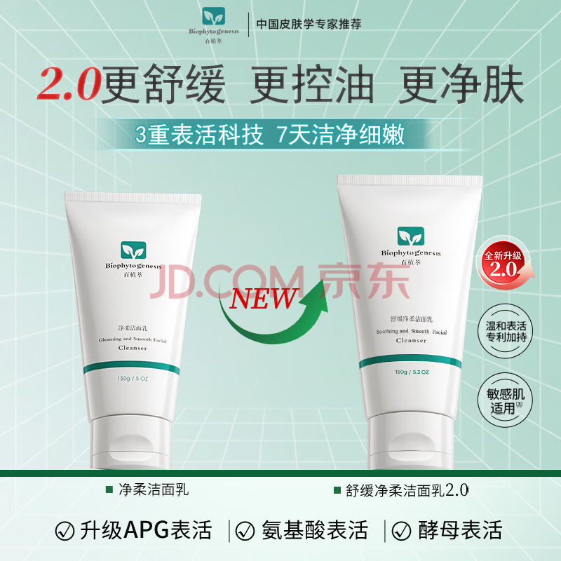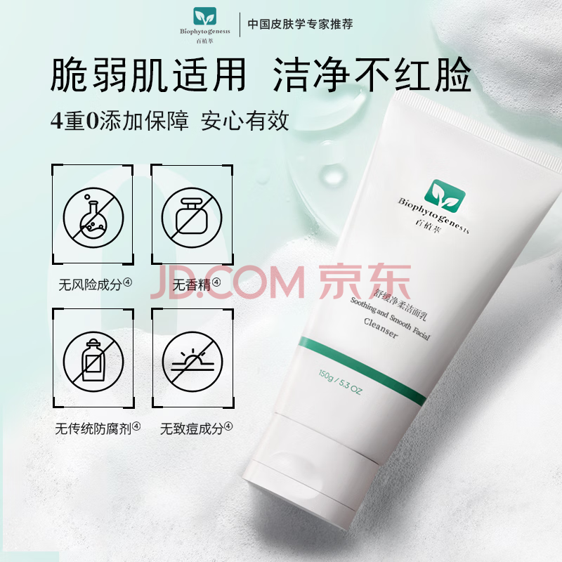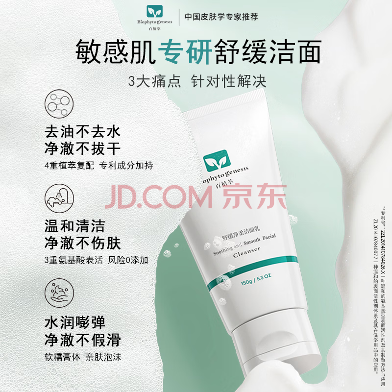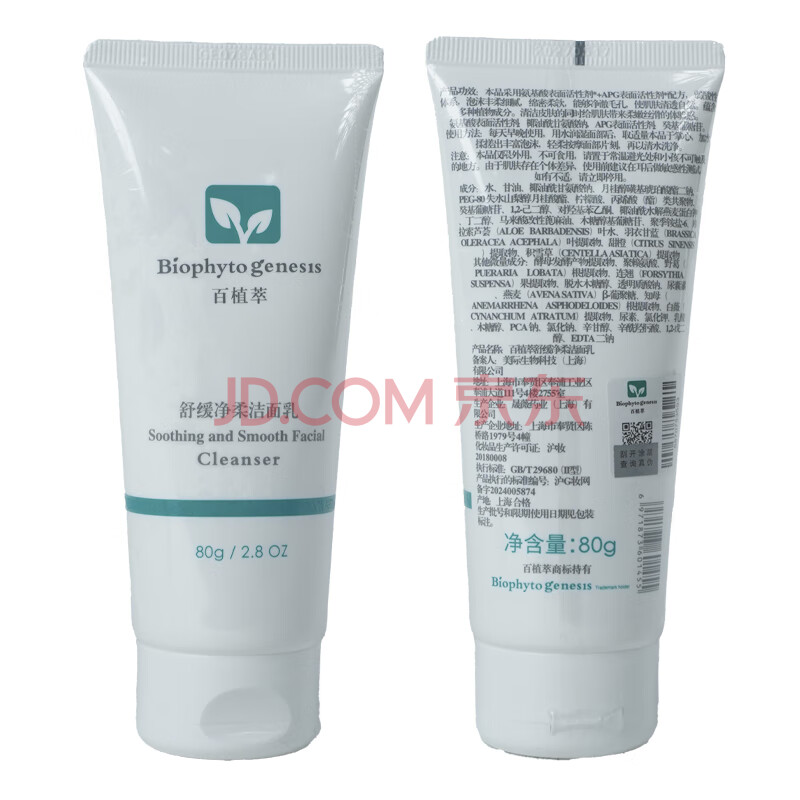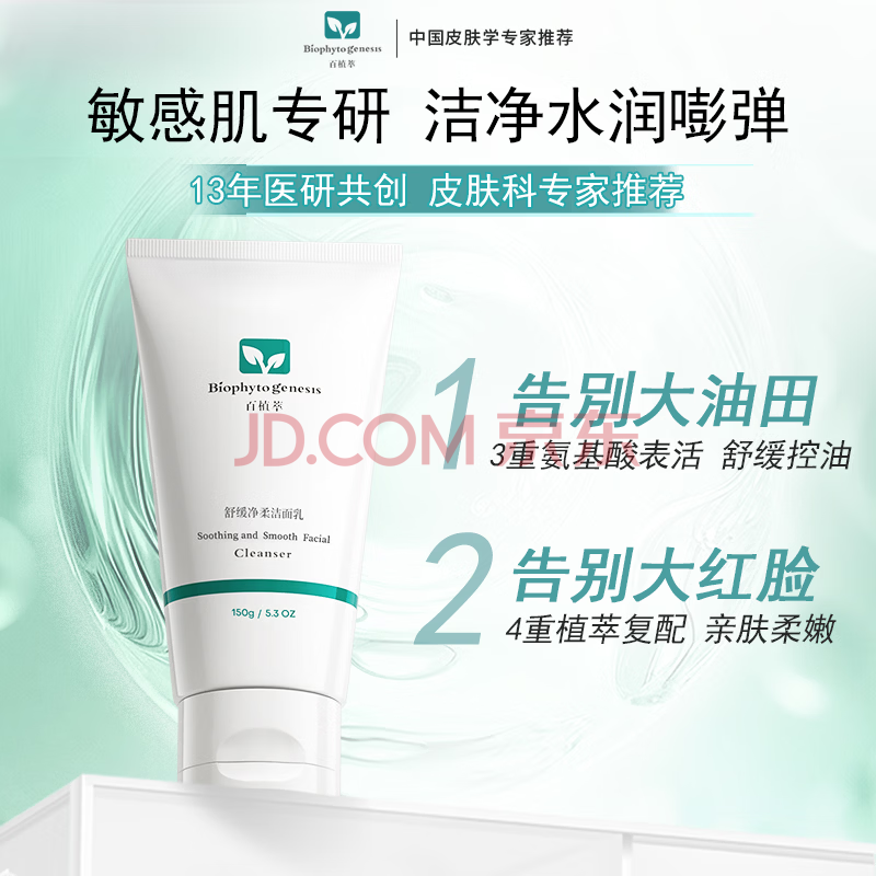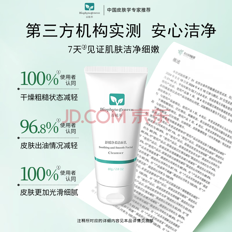 商品相册:百植萃舒缓净柔洁面乳80g氨基酸洗面奶清洁控油保湿舒缓无皂基敏肌专研第