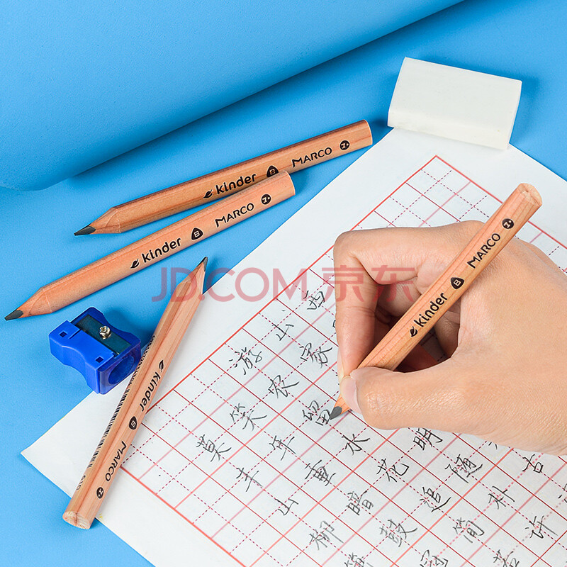 商品相册:马可(MARCO)正姿雪松木铅笔B学龄前加粗三角幼儿易抓握书写铅笔4支装配削笔器儿童系列 速写 马克笔绘画第