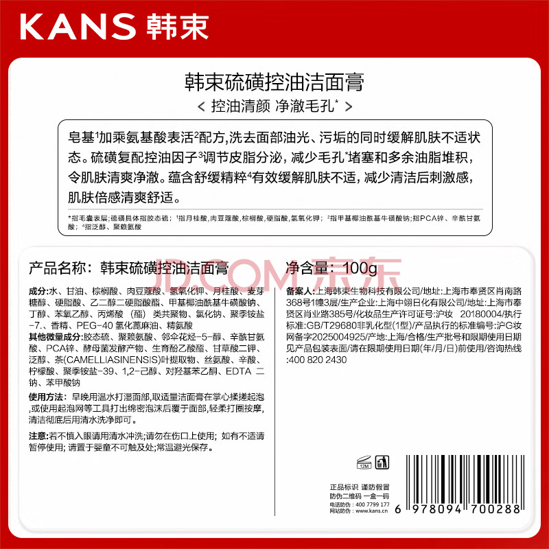 商品相册:韩束硫磺洗面奶男士控油祛痘除螨虫敏感肌适用氨基酸女士洁面自营正品第