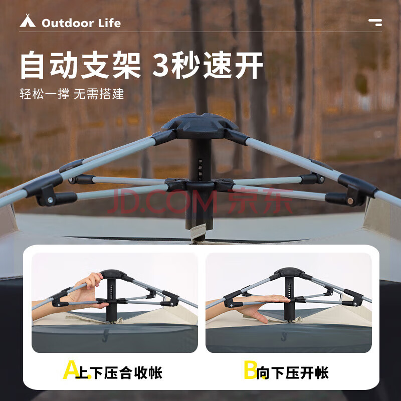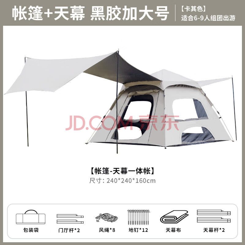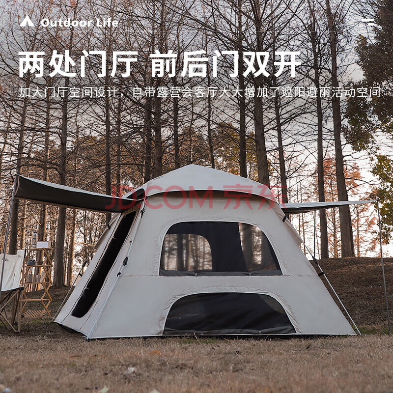 商品相册:狼行者帐篷户外露营4-6人大空间全自动速开免搭建公园休闲240*240cm第