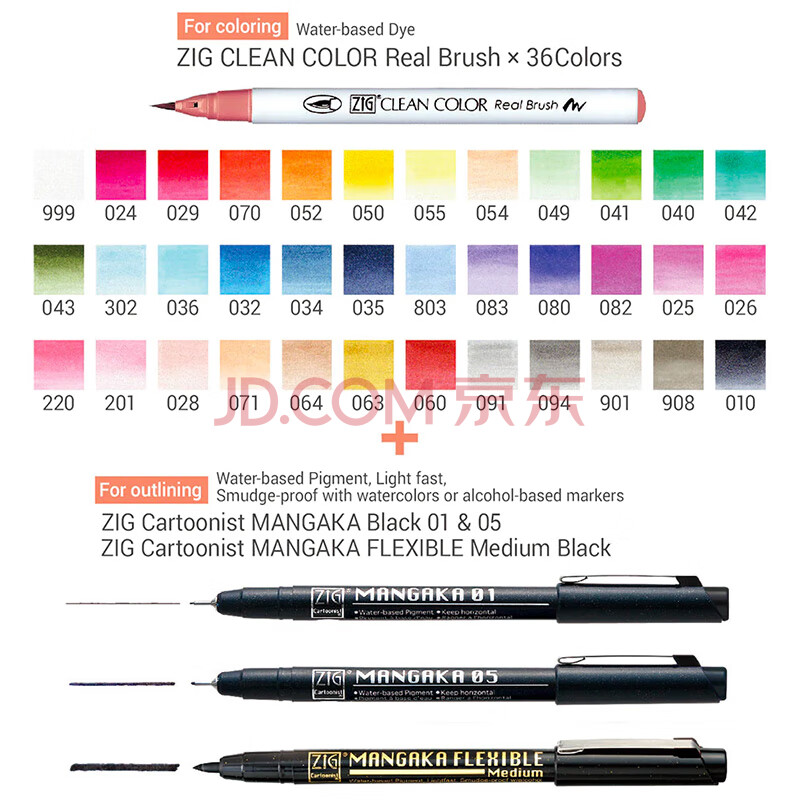 商品相册:吴竹KURETAKE毛笔式彩色水彩笔儿童画画笔用绘画漫画美术生专用彩色毛笔RBCN16039v文具礼盒第