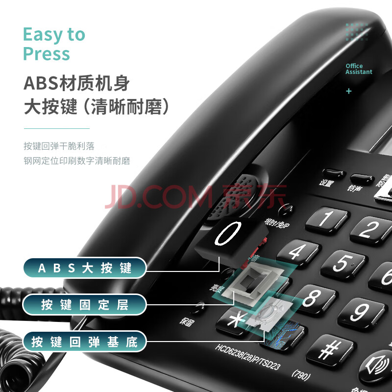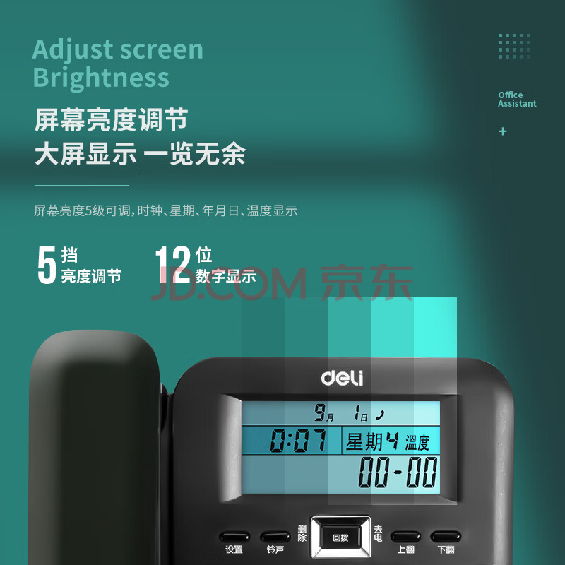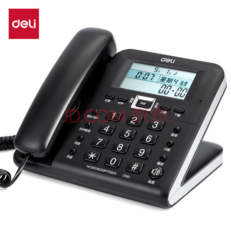 商品相册:得力(deli)电话机座机 固定电话 办公家用 38°倾角 来电显示 790黑第