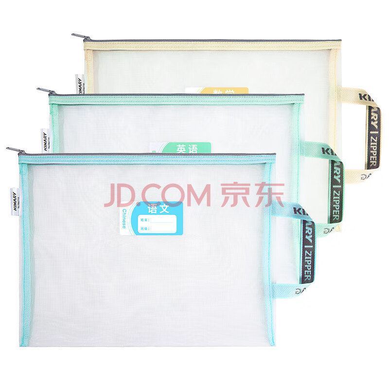 商品相册:金得利3个A4透明文件袋小学初中生分科目分类袋科目袋拉链书本作业试卷收纳袋手提袋文具补习袋FB8770-3第
