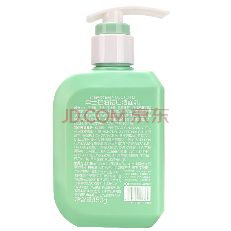 商品相册:李医生温和氨基酸祛痘洗面奶深层清洁毛孔清爽控油男女士洁面乳150g第