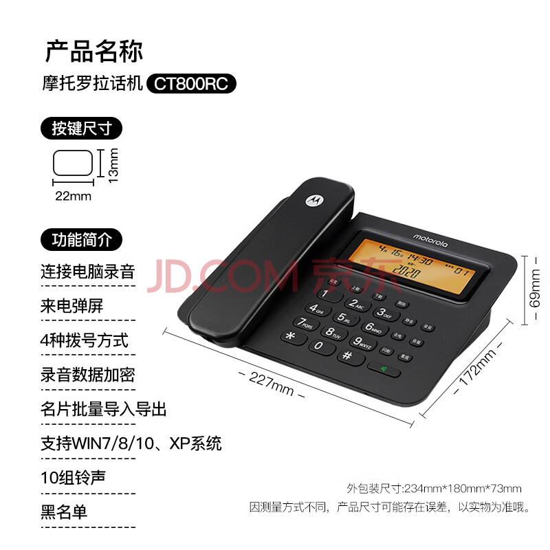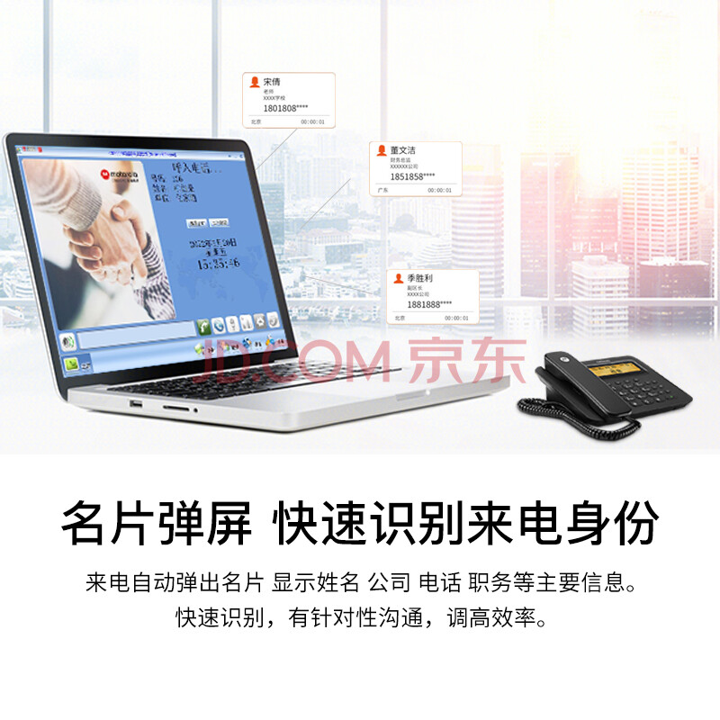 商品相册:摩托罗拉(Motorola)连接电脑录音电话机 固定座机办公家用电销话务客服呼叫中心软件海量存储批量拨打名片弹屏CT800RC第