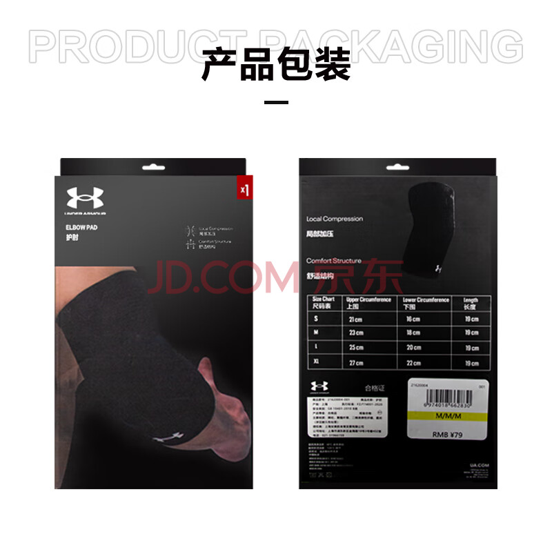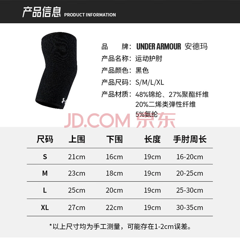 商品相册:安德玛(Under Armour)运动护肘男女健身防护篮球羽毛球护臂 加压透气护手肘 黑色S码第