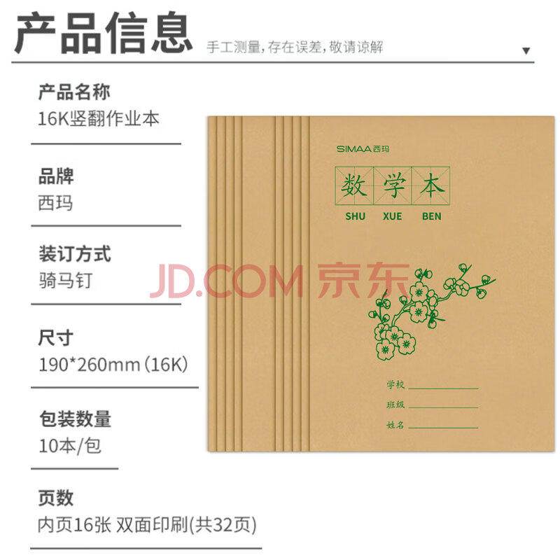 商品相册:西玛(SIMAA)小学生3-6年级统一标准16K大号作业本 数学作业本10本装 8820第
