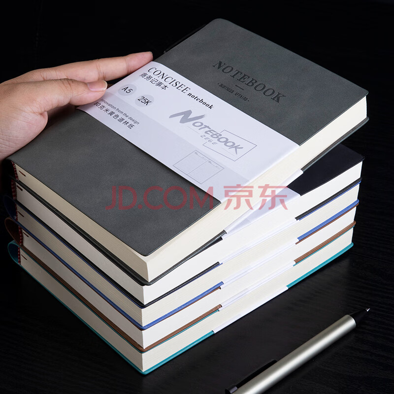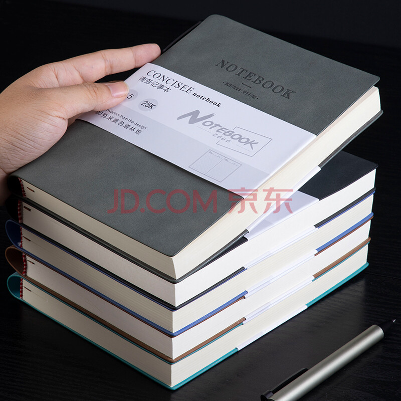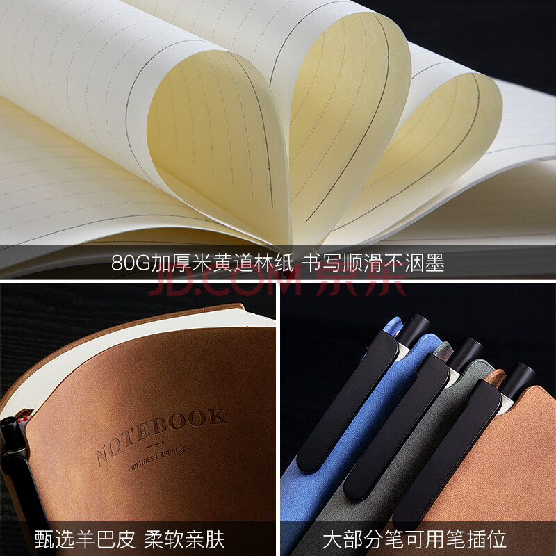 商品相册:富利快 180张360页带笔蓝色羊巴皮面商务笔记本子文具办公工作开会议记录本成人记事本日记本软皮可插笔加厚第