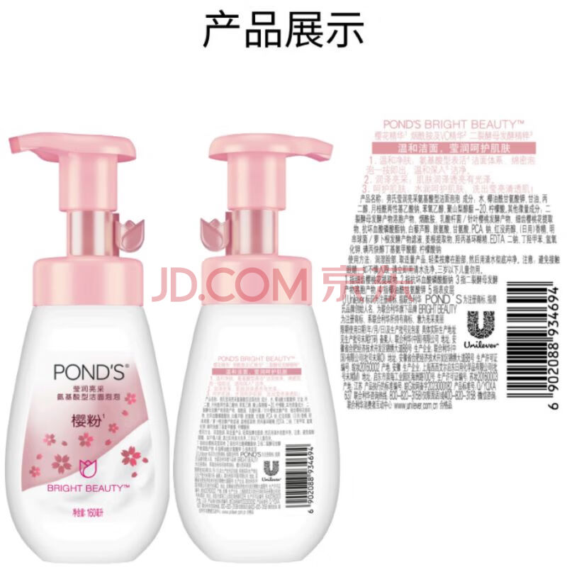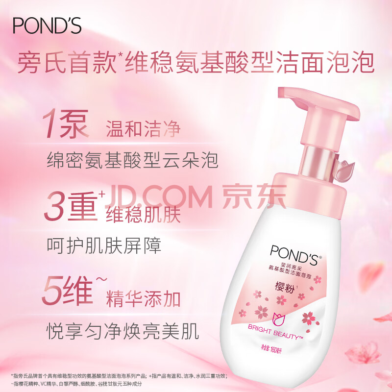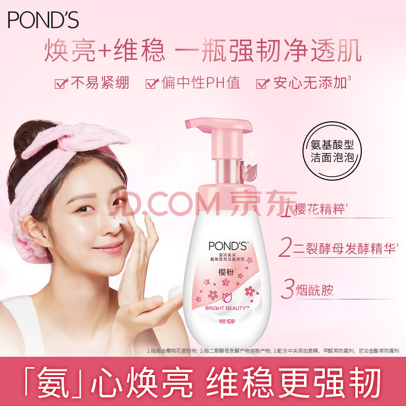 商品相册:旁氏(POND'S)樱粹粉润焕亮洁面泡泡160ml 烟酰胺氨基酸洗面奶第