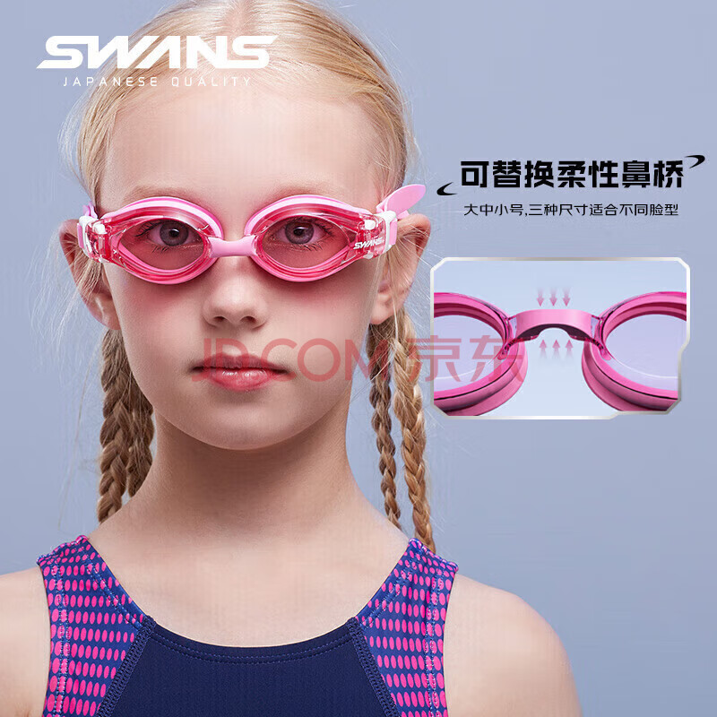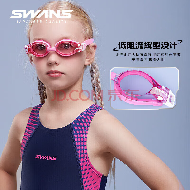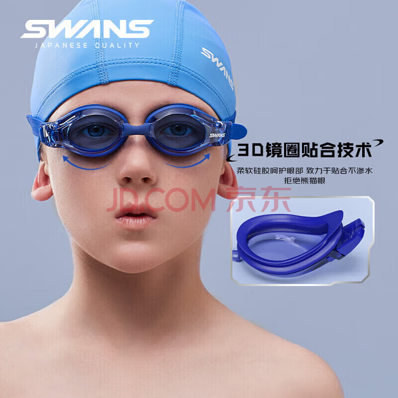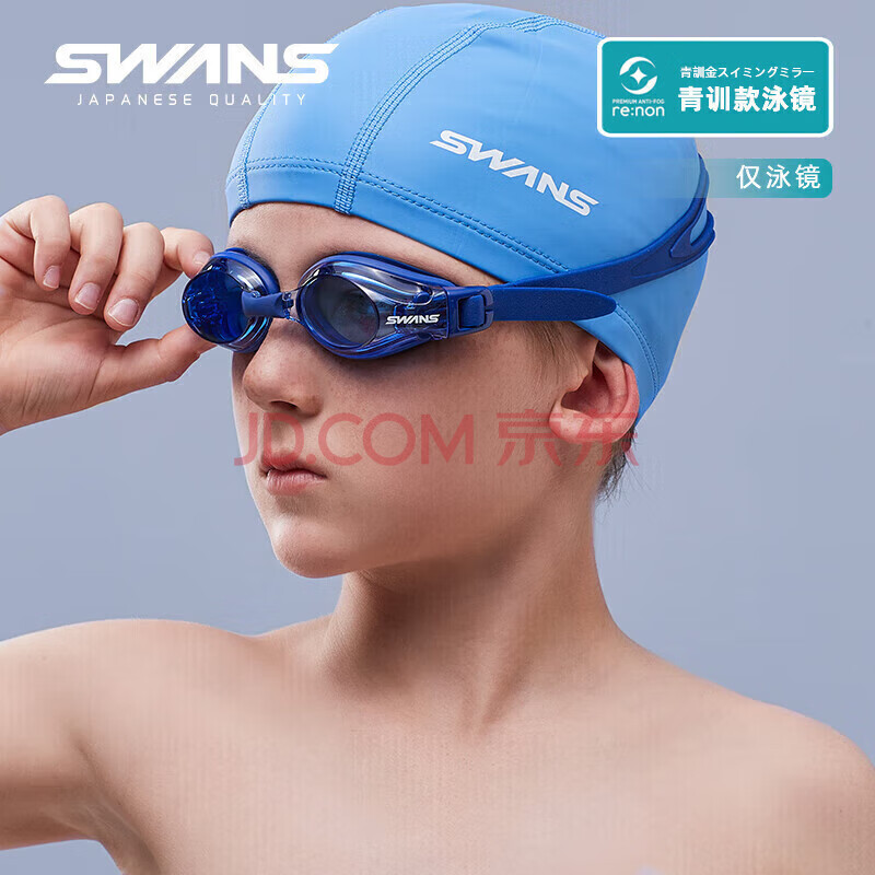 商品相册:SWANS儿童泳镜高清防雾防水男女童青少年专业训练游泳眼镜 蓝色第