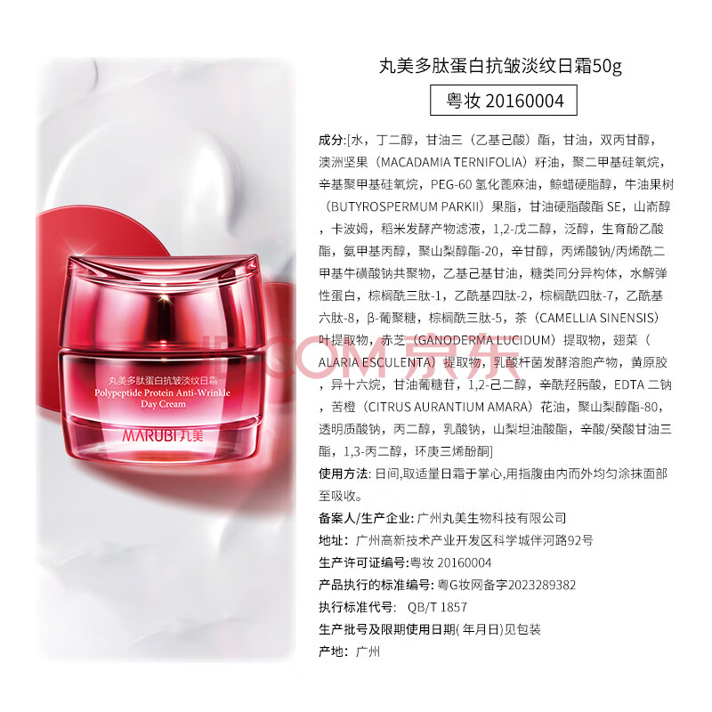 商品相册:丸美面霜 多肽蛋白抗皱淡纹日霜50g 女士护肤品 紧致抗皱 保湿弹润第
