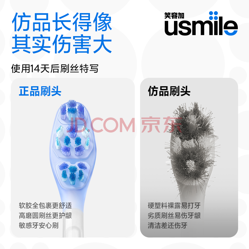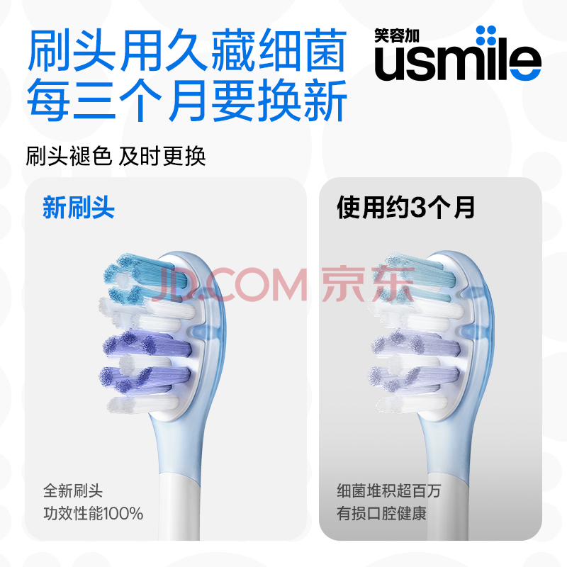 商品相册:usmile笑容加缓震电动牙刷头 缓震亮白刷头2支装 全软胶不打牙 刷出自然白 适配P10P20PRO等成人电刷第
