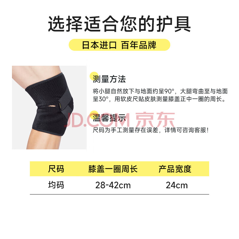 商品相册:D&M运动护膝男篮球护具轻薄透气足球护膝盖日本原装进口黑色一只装第