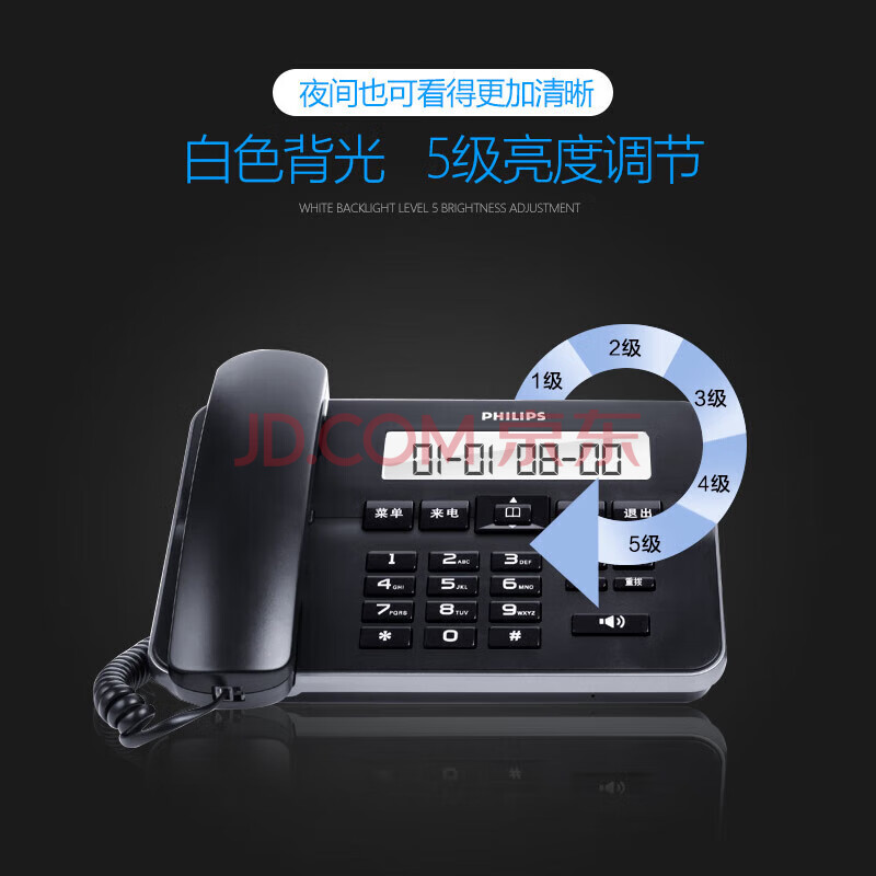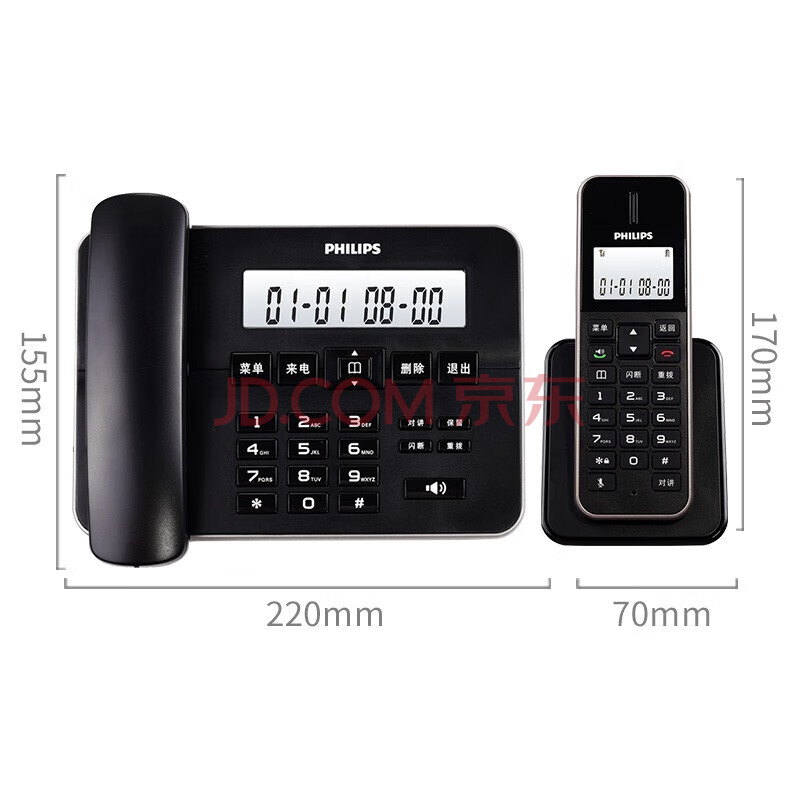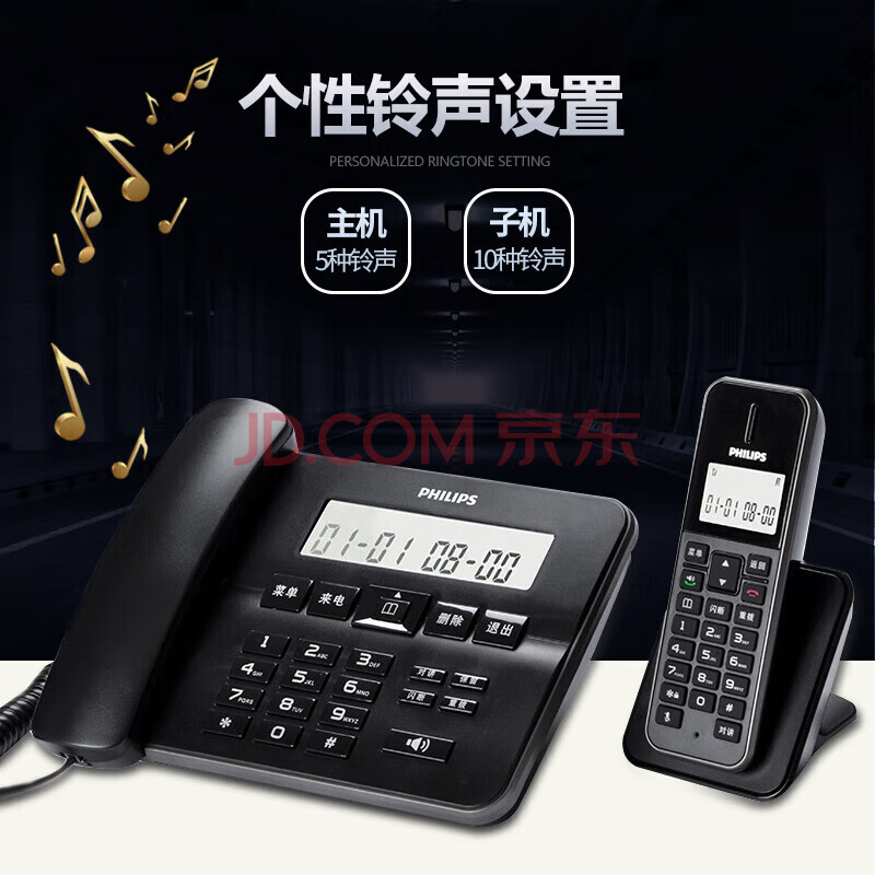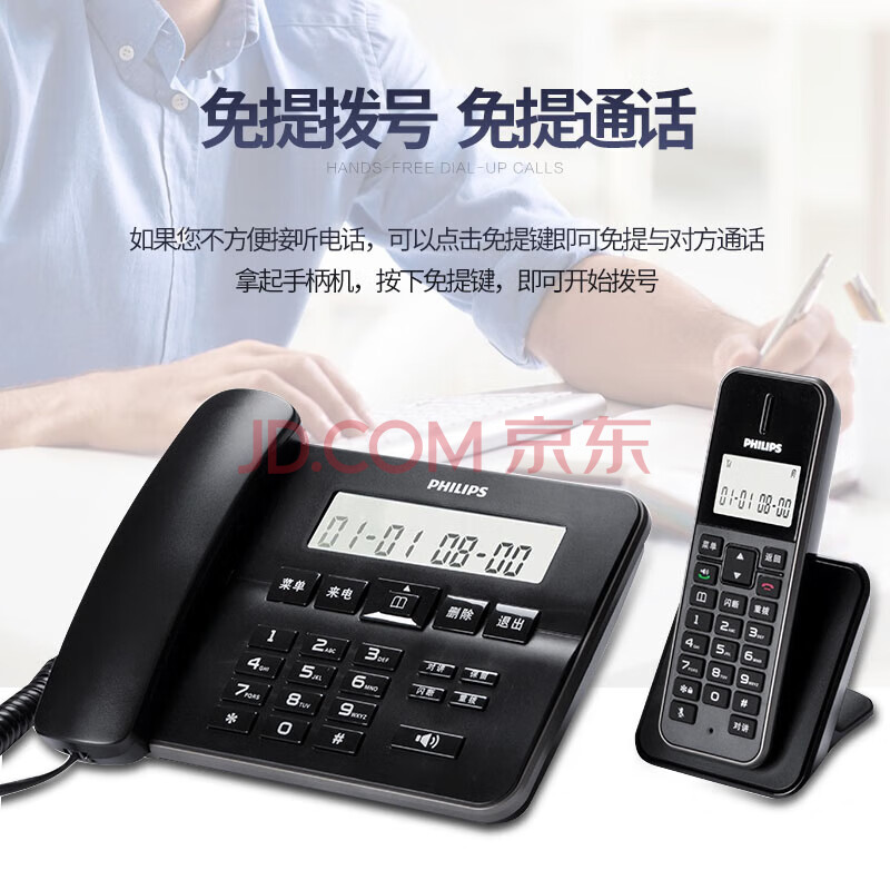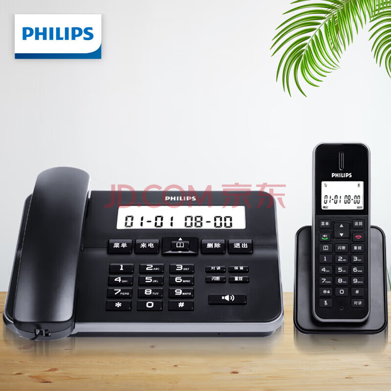 商品相册:飞利浦(PHILIPS)无绳电话机 无线座机 子母机 办公家用 中文菜单 双免提 扩展子机 DCTG192黑色第