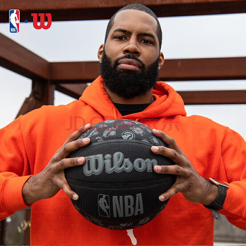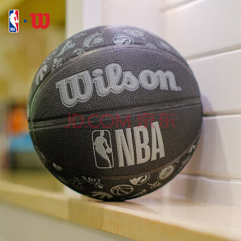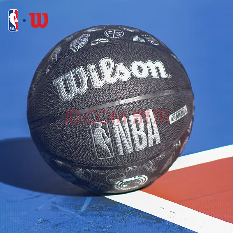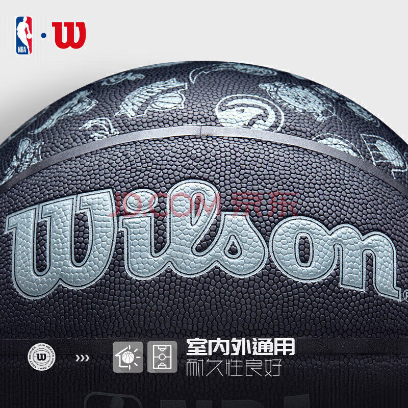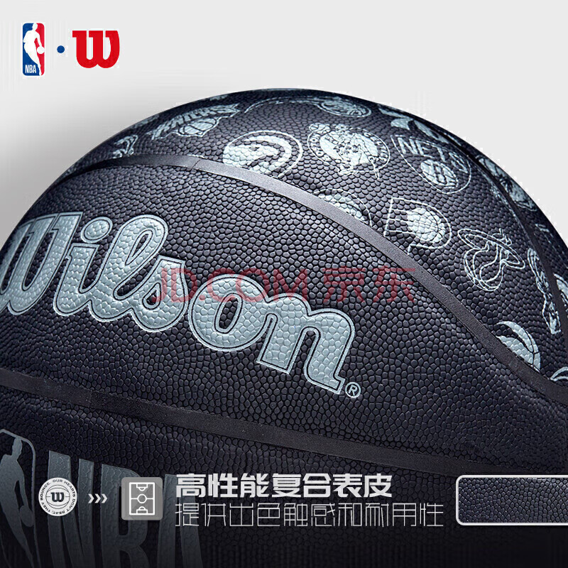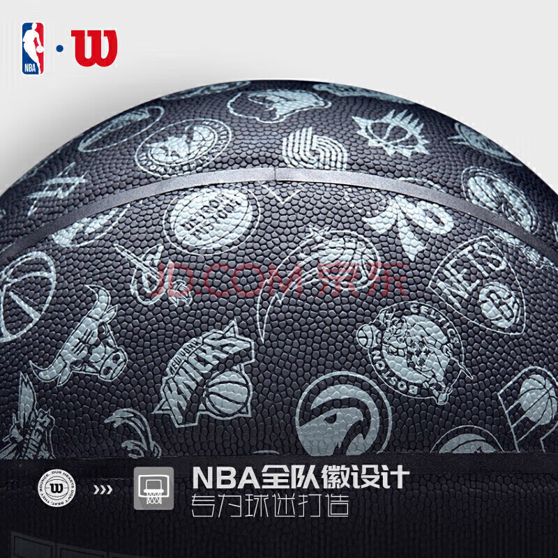 商品相册:Wilson威尔胜 NBA全球队队徽黑色款高性能表皮室内外通用成人7号篮球第