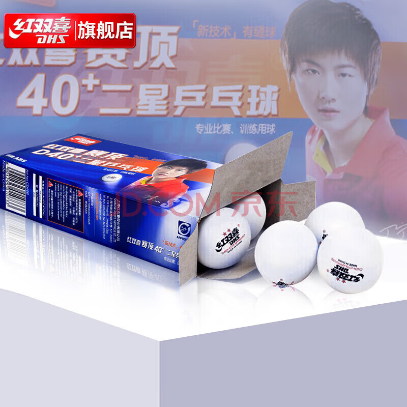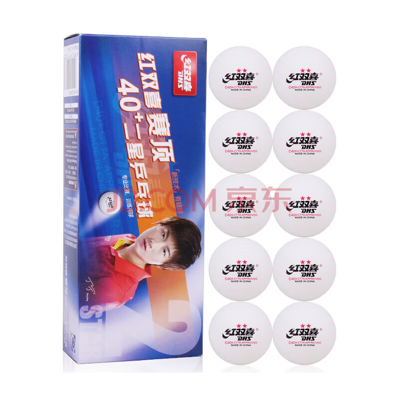 商品相册:红双喜赛顶白二星乒乓球40+专业比赛训练球 (10只装)第