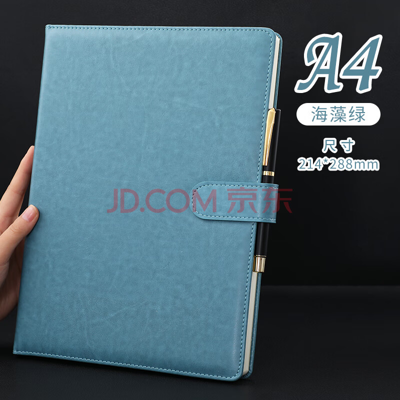 商品相册:嘉然恒 A4大本子360页加厚笔记本本子文具硬皮面搭扣大号记事本大学生考研用本商务会议记录本定制海藻绿第