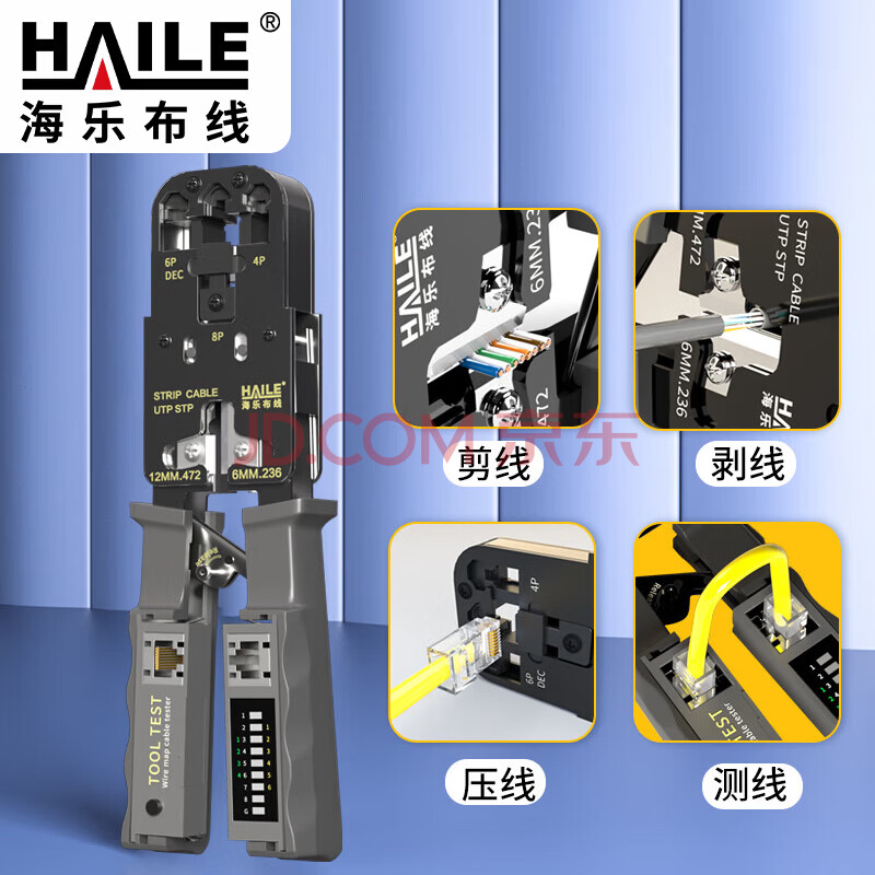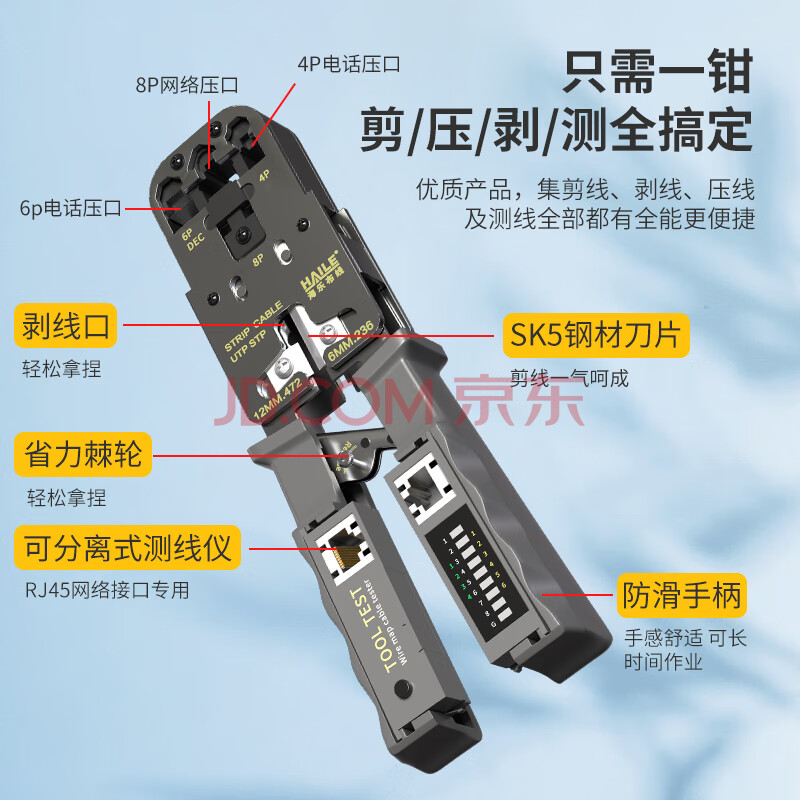 商品相册:HAILE网线钳带测试仪套装水晶头夹线超五六类棘轮助力压剥剪夹测 HT-G83T第