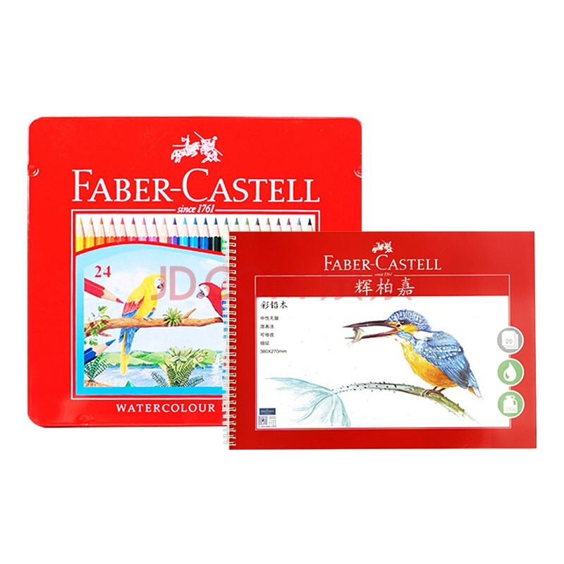 商品相册:辉柏嘉(Faber-castell)水溶性彩铅笔彩色铅笔24色+16K细纹230g20页绘画本绘画笔套装115925红铁盒装美术写生第
