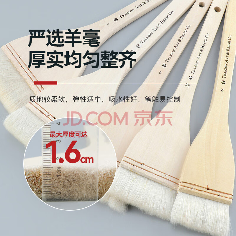 商品相册:中盛画材羊毛刷子水粉油画丙烯颜料绘画专用笔软毛清洁涂料乳胶油漆刷无痕刷烧烤烘培2寸单把美术写生第