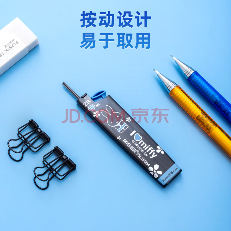 商品相册:晨光(M&G)文具米菲2B自动铅笔替芯 0.5mm树脂铅芯 学生考试绘图铅笔芯 60mm*20根/盒颜色随机FSL35004第