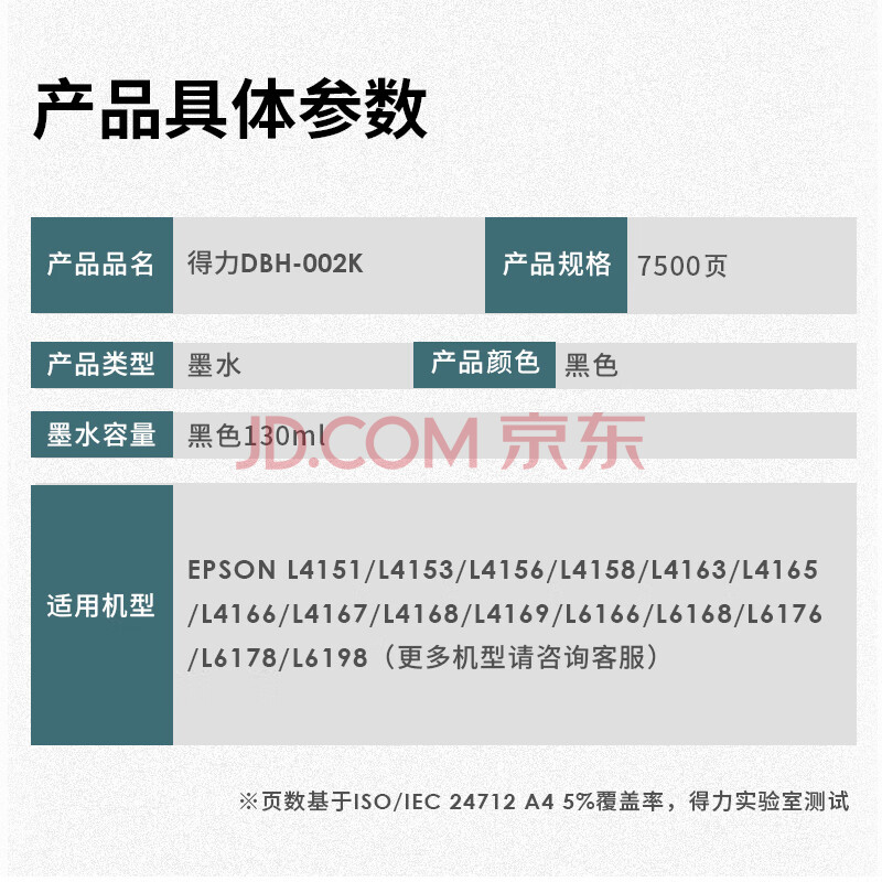 商品相册:得力(deli)002墨水 适用爱普生L4151 L4153 L4156 L4158 L4163 L6166 L6168 L6176 002喷墨打印机墨水 黑色第