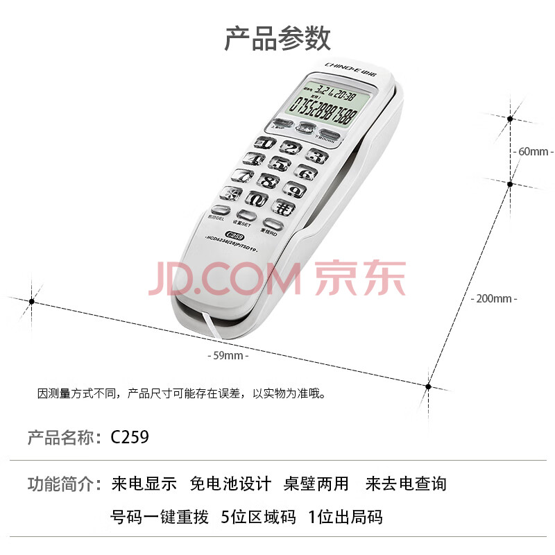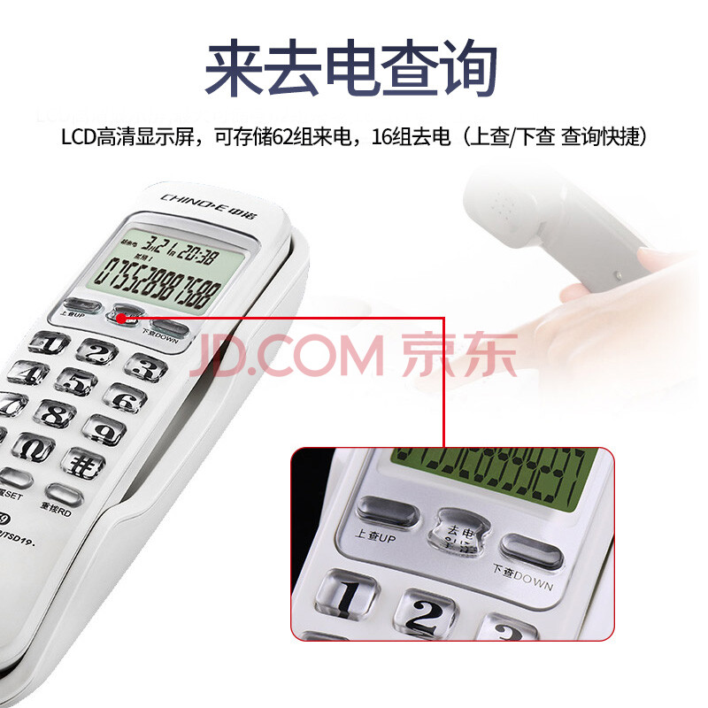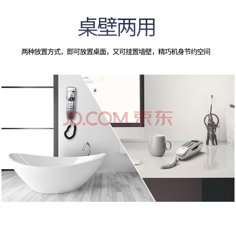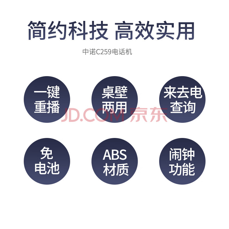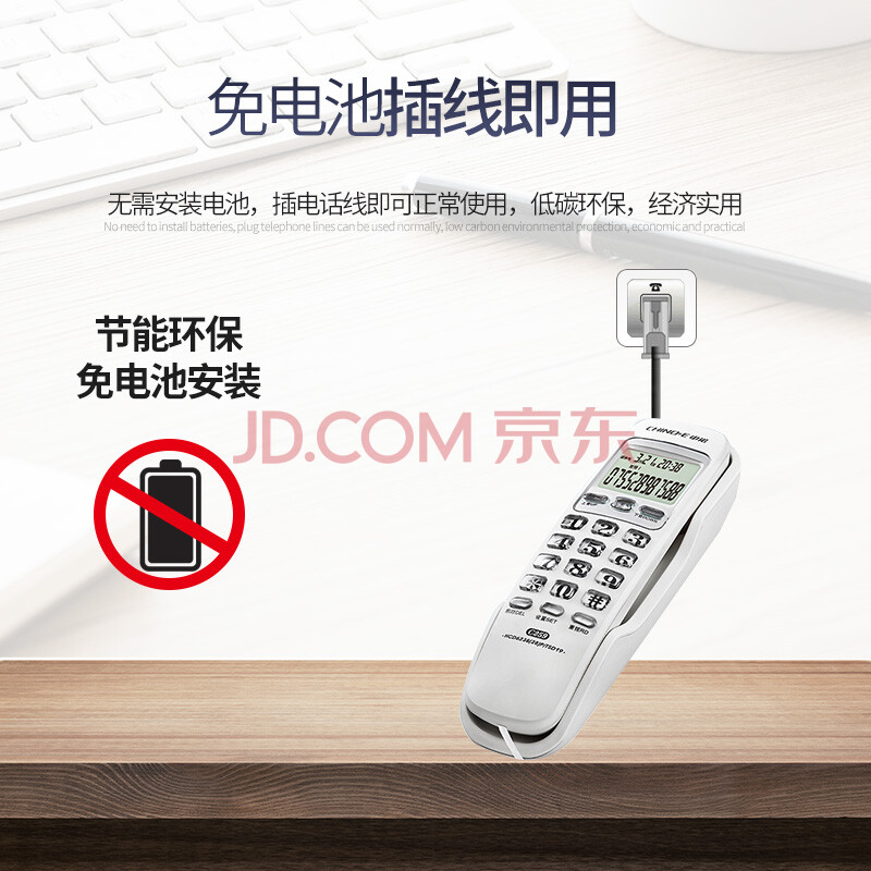 商品相册:中诺电话机座机固定电话来电显示桌壁两用免电池有线板机坐机C259白色办公伴侣第