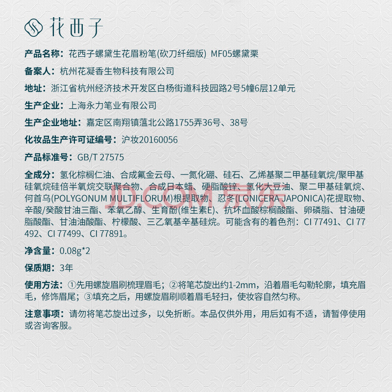商品相册:花西子首乌眉粉笔螺黛栗初学者(1正1替)自然持久MF05螺黛栗第