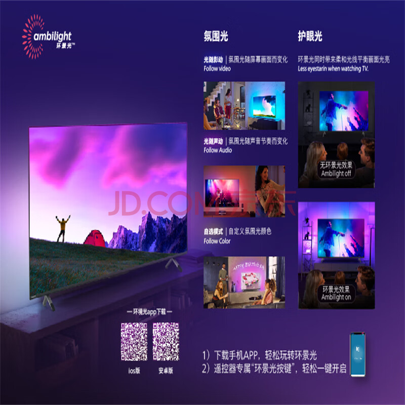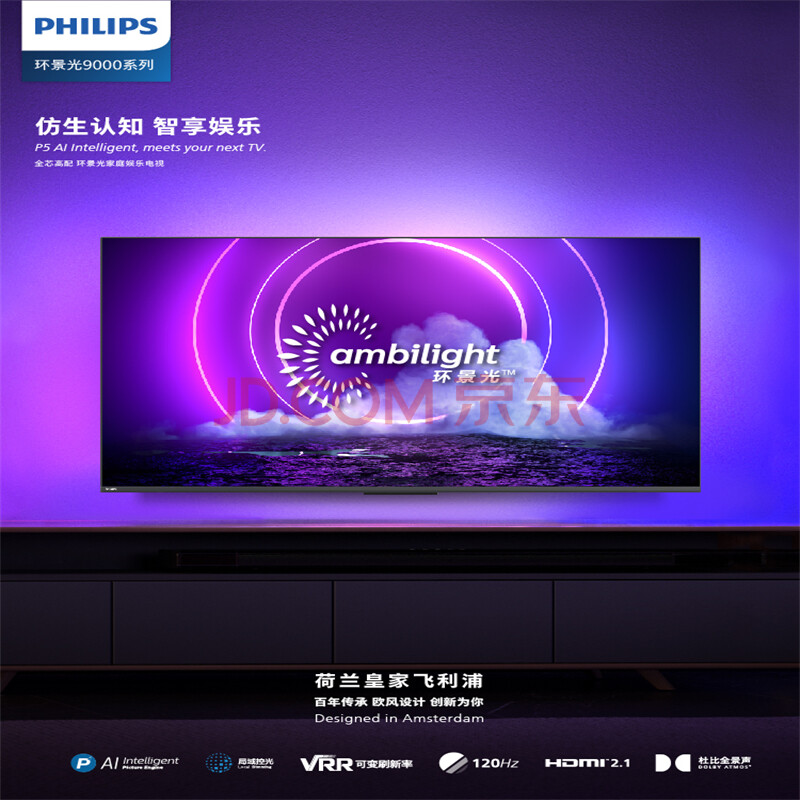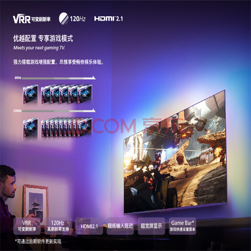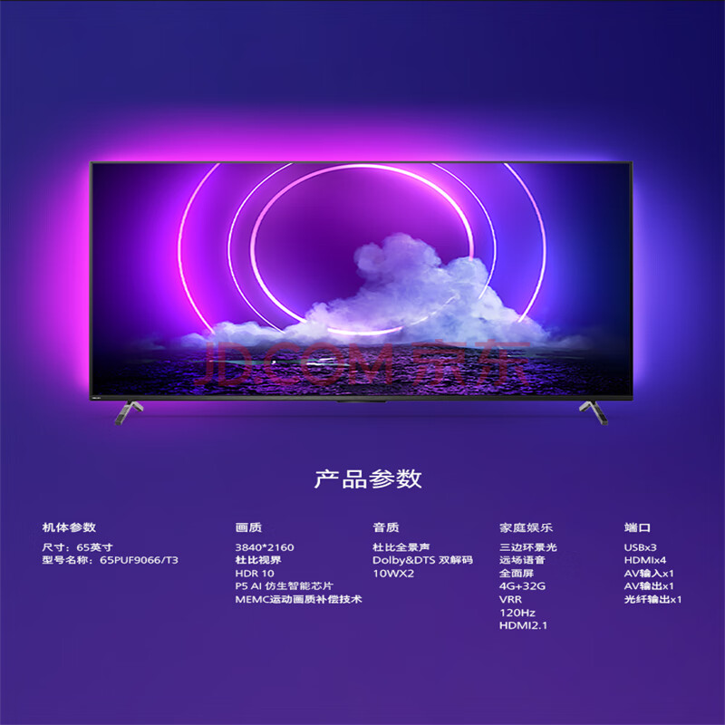 商品相册:飞利浦游戏电视G1 MAX 65英寸 65PUF9066/T3 120Hz 4K 全面屏 环景光 HDMI2.1+32G 网络智能电视第