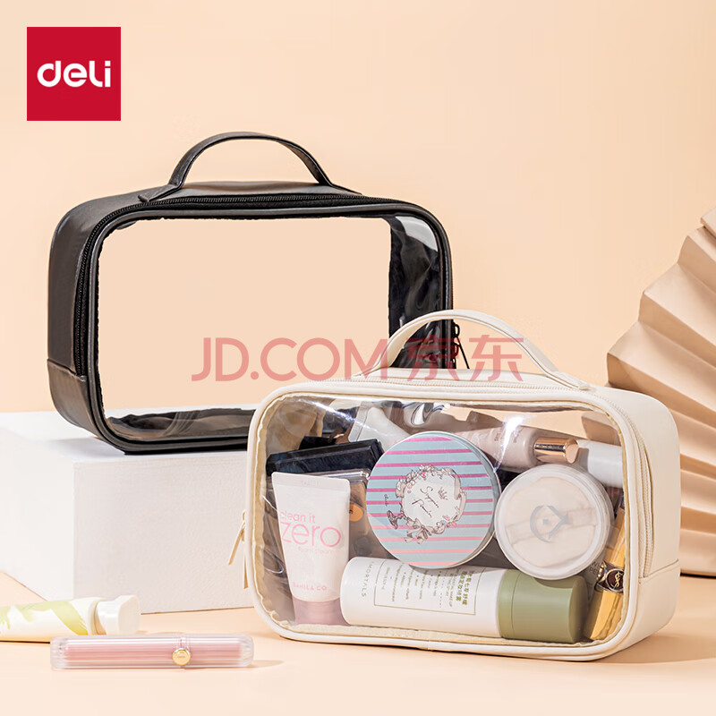 商品相册:得力(deli)旅行收纳袋收纳包 化妆品洗漱收纳包 手提外出携带方便 白 64871第