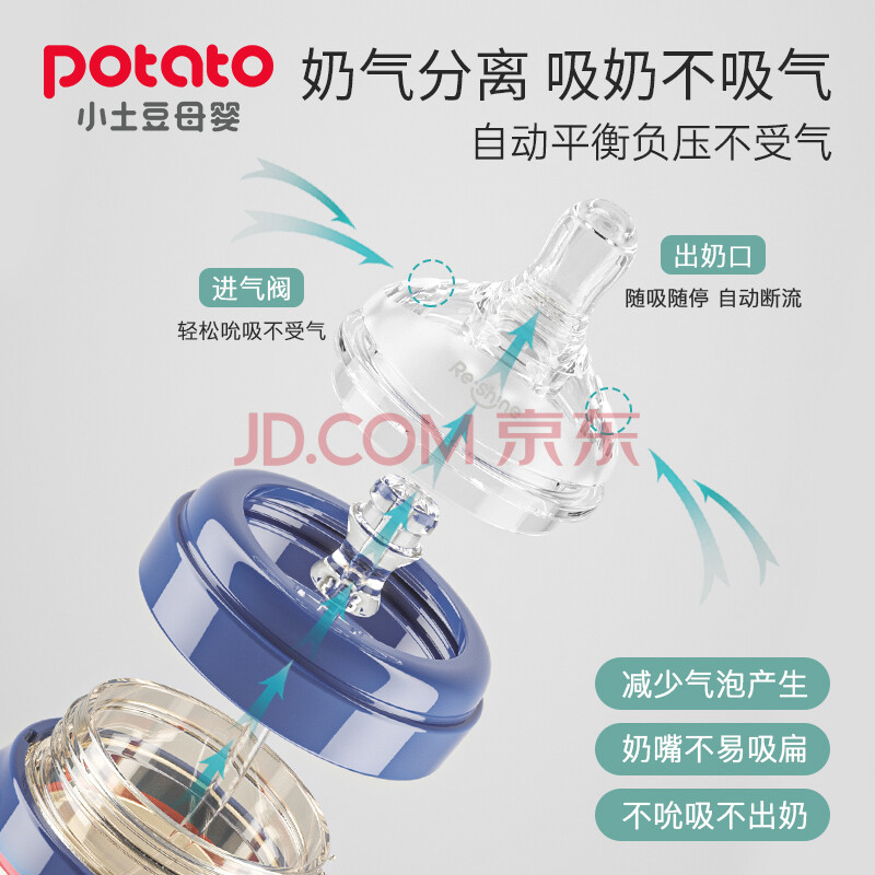 商品相册:小土豆(potato)婴儿ppsu宽口径带重力球吸管奶瓶一杯3用L号6个月以上300ml冰晶蓝第