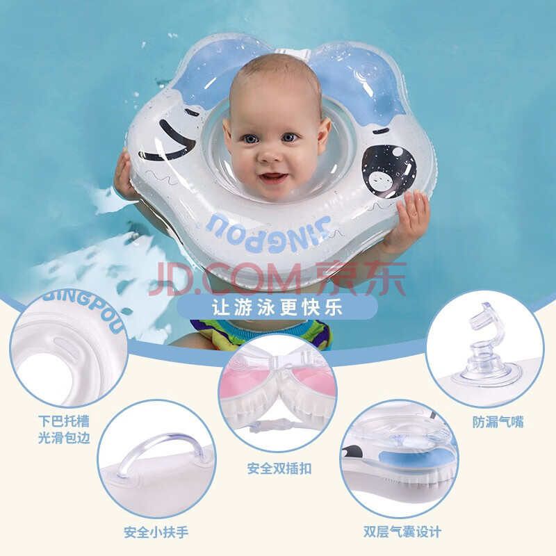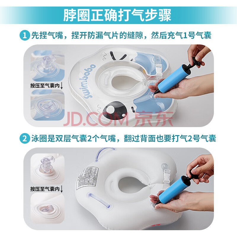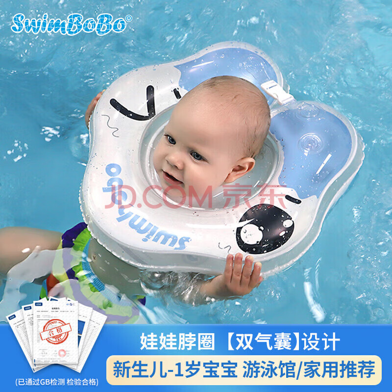 商品相册:swimbobo婴儿游泳圈双气囊脖圈 0-1岁新生儿游泳圈婴儿洗澡颈圈 K5012蓝L第