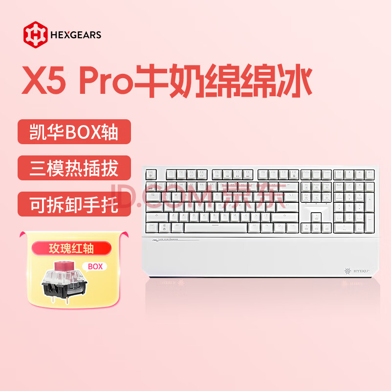 商品相册:黑峡谷(Hyeku)X5 Pro 无线蓝牙有线三模键盘108键PBT键帽牛奶绵绵冰凯华BOX玫瑰红轴第