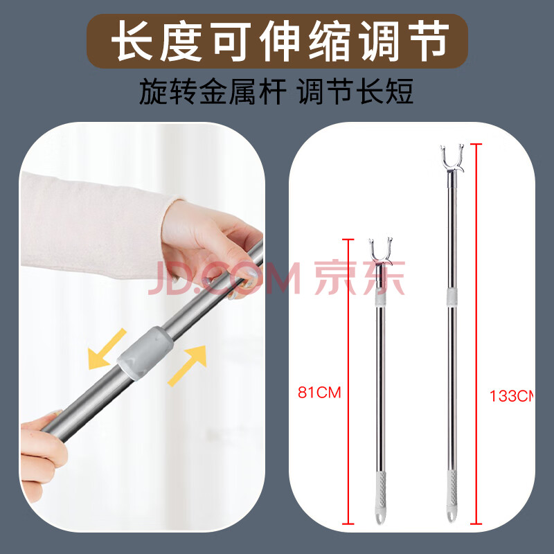商品相册:尚格兰 不锈钢晾衣杆伸缩撑衣杆加厚衣叉杆晾衣叉晒衣杆可调节挂衣杆第