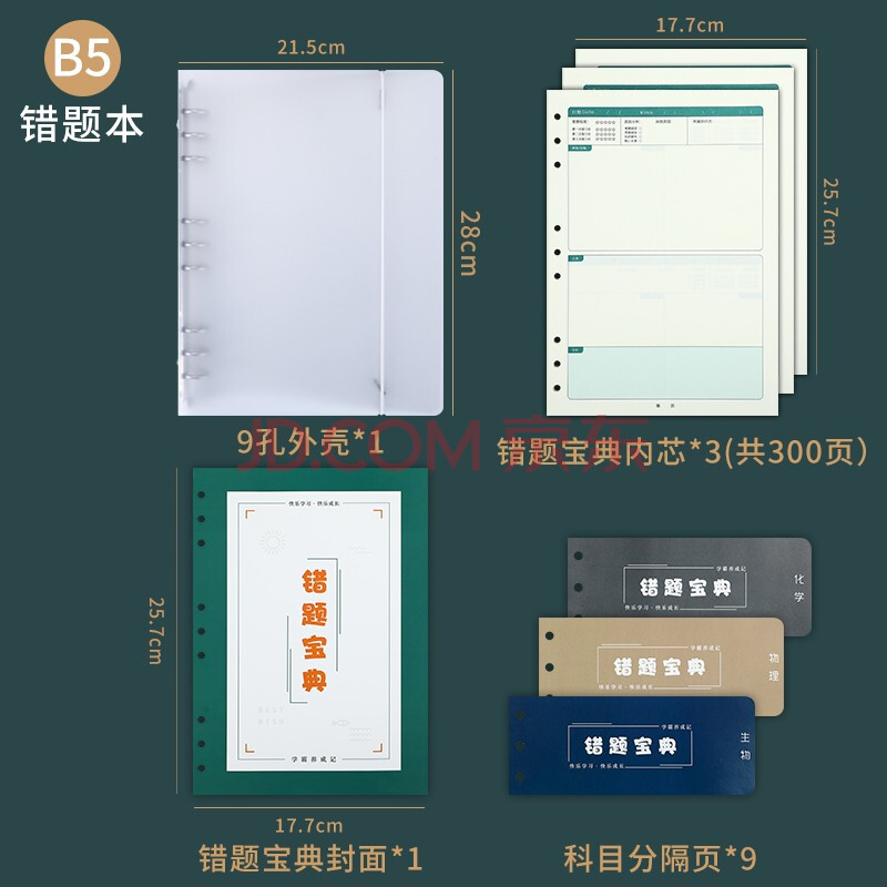 商品相册:法拉蒙错题本活页可拆卸替换初中生高中生a5纠错本小学生数学错题收集整理册神器简约b5加厚考研大学生改错本第