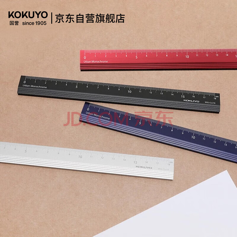 商品相册:国誉(KOKUYO)都市印象学生考试绘图铝制直尺测量工具 尺子18cm 红色 WSG-CLU18DR第